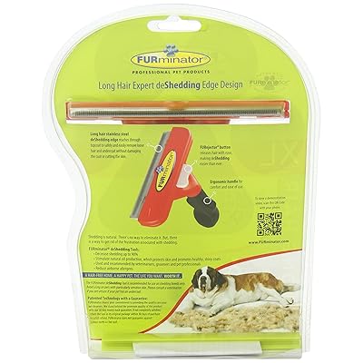 The furminator deshedding tool for large, long haired dogs features a long hair stainless steel deshedding edge to reach through topcoat and safely remove loose hair and undercoat without damaging your pet's coat or cutting their skin.